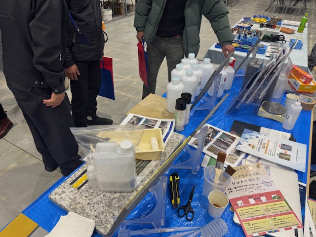 石材業界でのメンテナンス洗剤や防滑剤「ドンタッチフロアー」、新製品「常温乾燥型釉薬」の試験展示を行います!是非ご来場した際にはブースへお立ち寄りください!