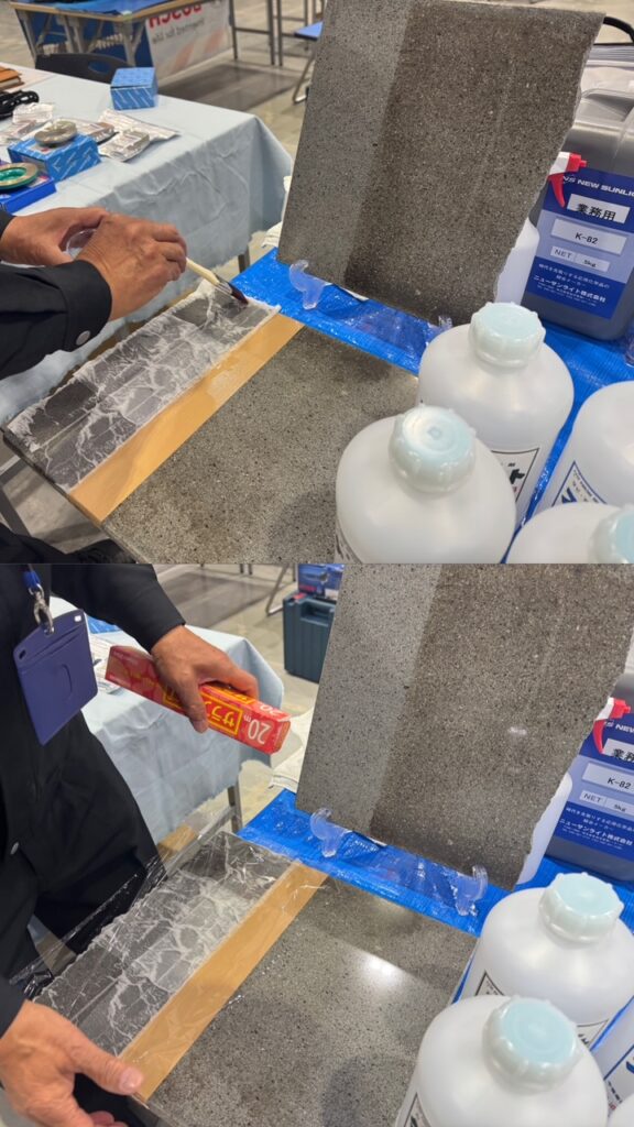 ケントの展示会会場にて本小松石専用洗剤「K-82」実演を行いました!